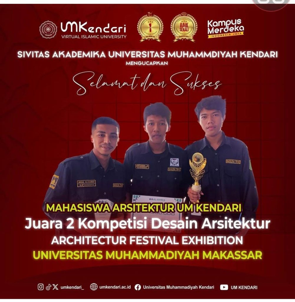 MAHASISWA ARSITEKTUR UM KENDARI Juara 2 Kompetisi Desain pada ARCHITECTUR FESTIVAL EXHIBITION UNIVERSITAS MUHAMMADIYAH MAKASSAR