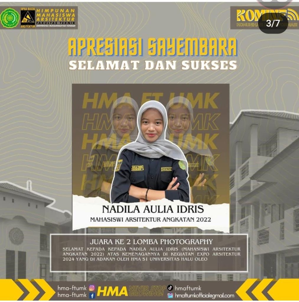 NADILA AULIA IDRIS MAHASISWI ARSITEKTUR ANGKATAN 2022 JUARA KE 2 LOMBA PHOTOGRAPHY